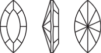 Ювелирные камни Swarovski в форме лодочки. Эти кристаллы используют для создания украшений в технике сутажной вышивки, при работе с полимерной глиной или мастикой Ceralun. Вклеивают в изделия из кожи и дерева, оправляют в серебро и другие металлы. Оплетают бисером и используют для вышивания вместе с нитями, пайетками, бусинами и стразами других разновидностей.