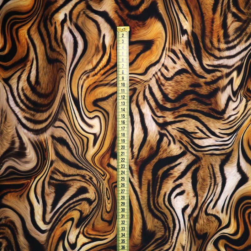 Эта ткань создана для тех, кто знает цену движению. Высокая плотность полотна, эластичность во всех направлениях, мягкость и упругая структура — всё это делает трикотажное полотно на основе полиэстера и эластана настоящей находкой для пошива купальников, костюмов, леггинсов, а иногда и цельных сценических нарядов. Благодаря сочетанию плотной посадки и ярких принтов ткань не просвечивает, даже в растянутом виде, оставаясь визуально целостной. Это особенно важно при работе с крупными узорами, клеткой, полосками и абстрактными мотивами, где требуется чёткая геометрия. Кроме того, Friedman отлично справляется с изгибами и объёмами: материал не деформируется, не даёт пузырей, не искажает пропорции изделия.