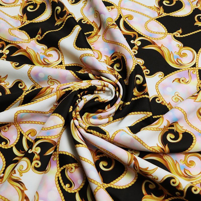 Эта ткань создана для тех, кто знает цену движению. Высокая плотность полотна, эластичность во всех направлениях, мягкость и упругая структура — всё это делает трикотажное полотно на основе полиэстера и эластана настоящей находкой для пошива купальников, костюмов, леггинсов, а иногда и цельных сценических нарядов. Благодаря сочетанию плотной посадки и ярких принтов ткань не просвечивает, даже в растянутом виде, оставаясь визуально целостной. Это особенно важно при работе с крупными узорами, клеткой, полосками и абстрактными мотивами, где требуется чёткая геометрия. Кроме того, Friedman отлично справляется с изгибами и объёмами: материал не деформируется, не даёт пузырей, не искажает пропорции изделия.
