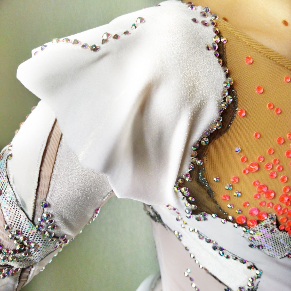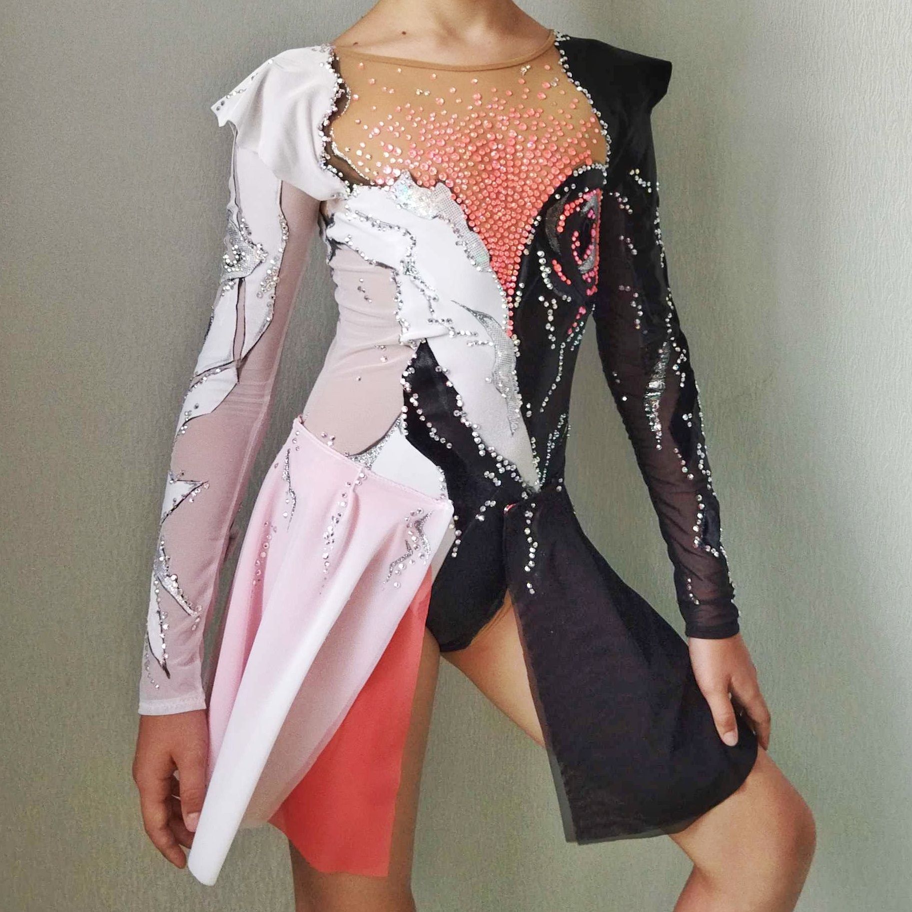И этому есть объяснение - любой элемент изделия, любой дизайн, любой рисунок кардинально меняется при нанесении страз. Камнями можно проставить акценты, визуально поменять пропорции, да наконец просто украсить изделие. Смотришь на эти сверкающие, откуда то из глубины, кристаллы и невольно зачаровываешься. Это не просто блеск и сияние, это настоящая магия камней. В честь этой магии я и дала имя конкурсному купальнику.