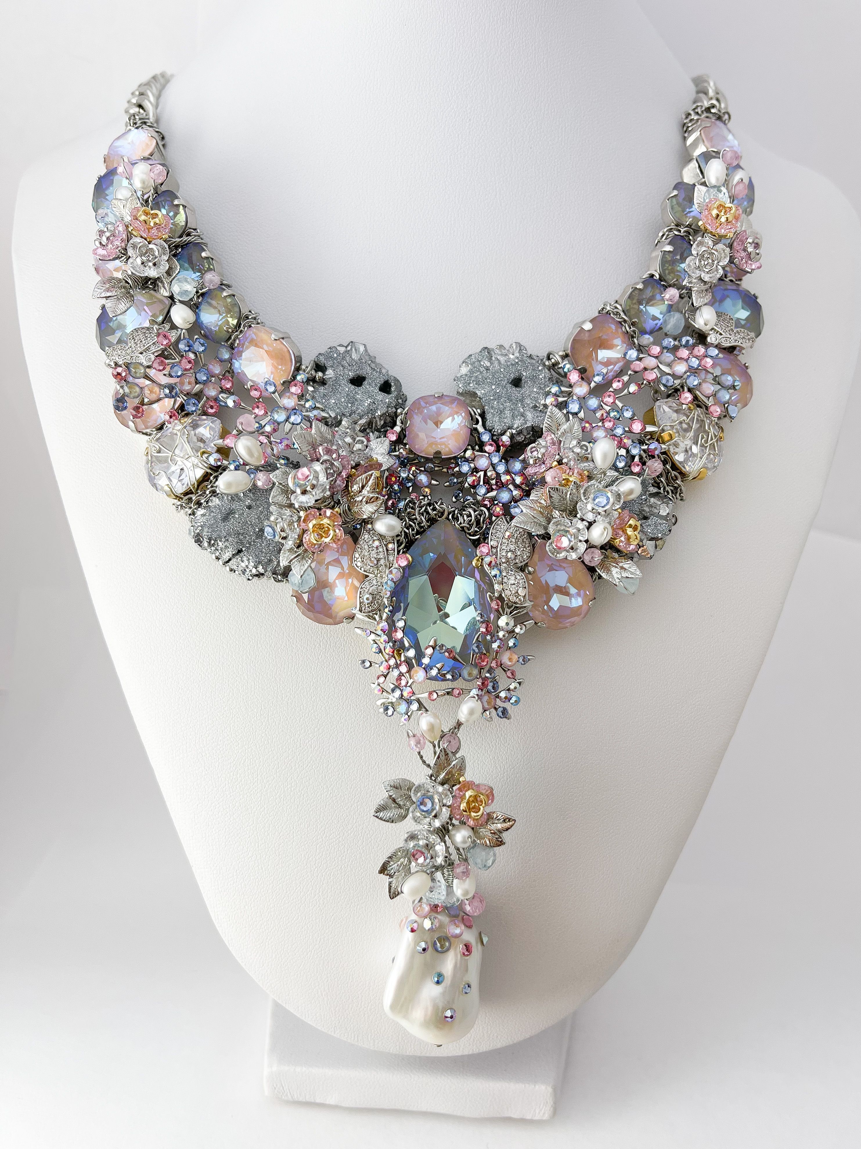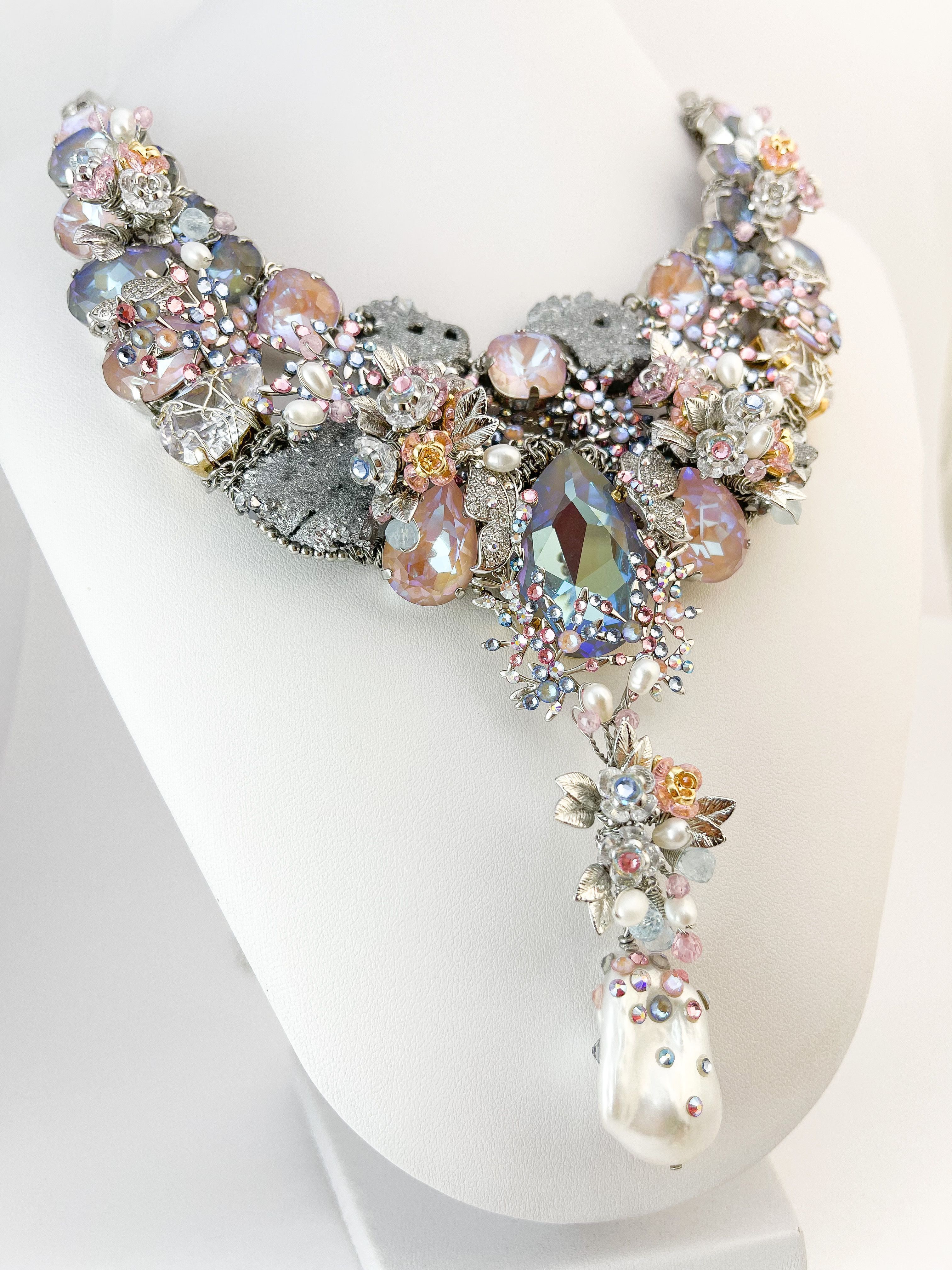 Как скола воплощает мужество и силу. Как порхающая бабочка показывает нам всю трепетность течения времени, и цветы благоухают самыми вкусными красками. Топазы, словно капли водопада, стекают по лепесткам цветов. Мельчайшие кристаллы небрежно рассыпаны как будто брызги воды. Так хочется освободиться от оков ежедневной рутины и напиться чистой водой, и надышаться свежим ветром. Вот оно совершенство мира в естественном воплощении природы.