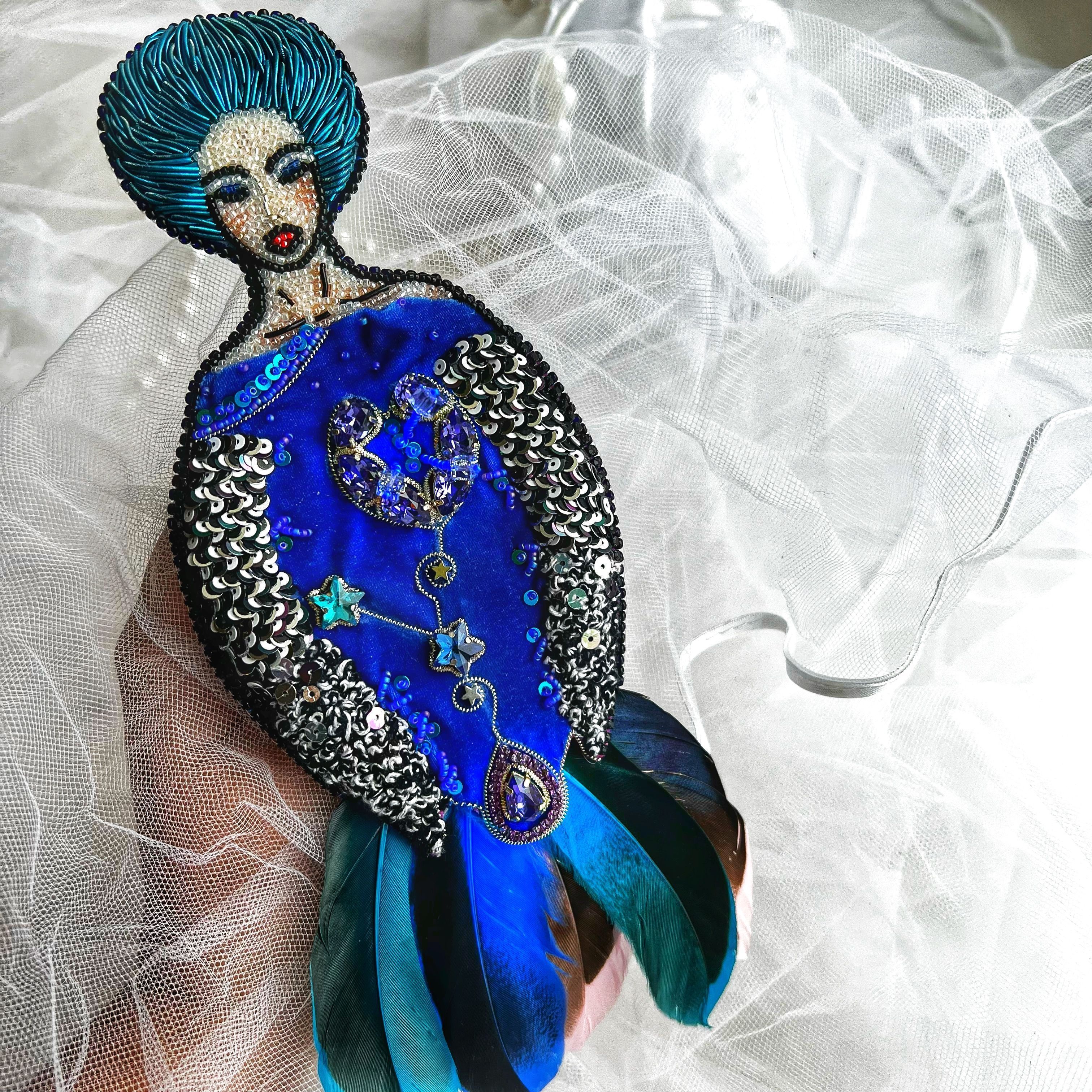 Эта брошь олицетворяет девушку-рукодельницу, которая становиться свободной птицей, у неё появляются крылья когда она занимается творчеством, она буквально парит в своих творческих фантазиях.