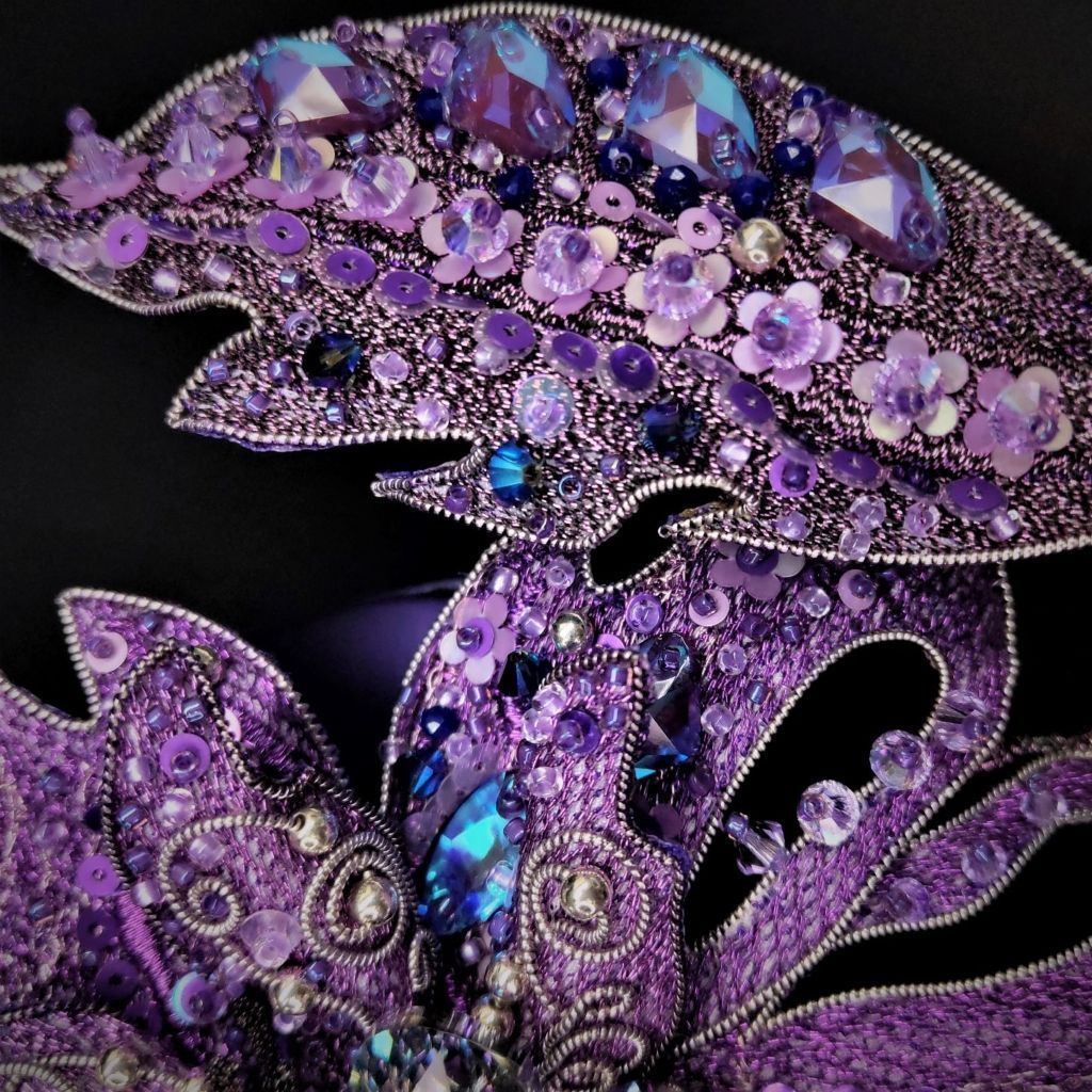 Брошь размеры - 17х14 см, выполнена в техники вышивки металлизированными нитями.