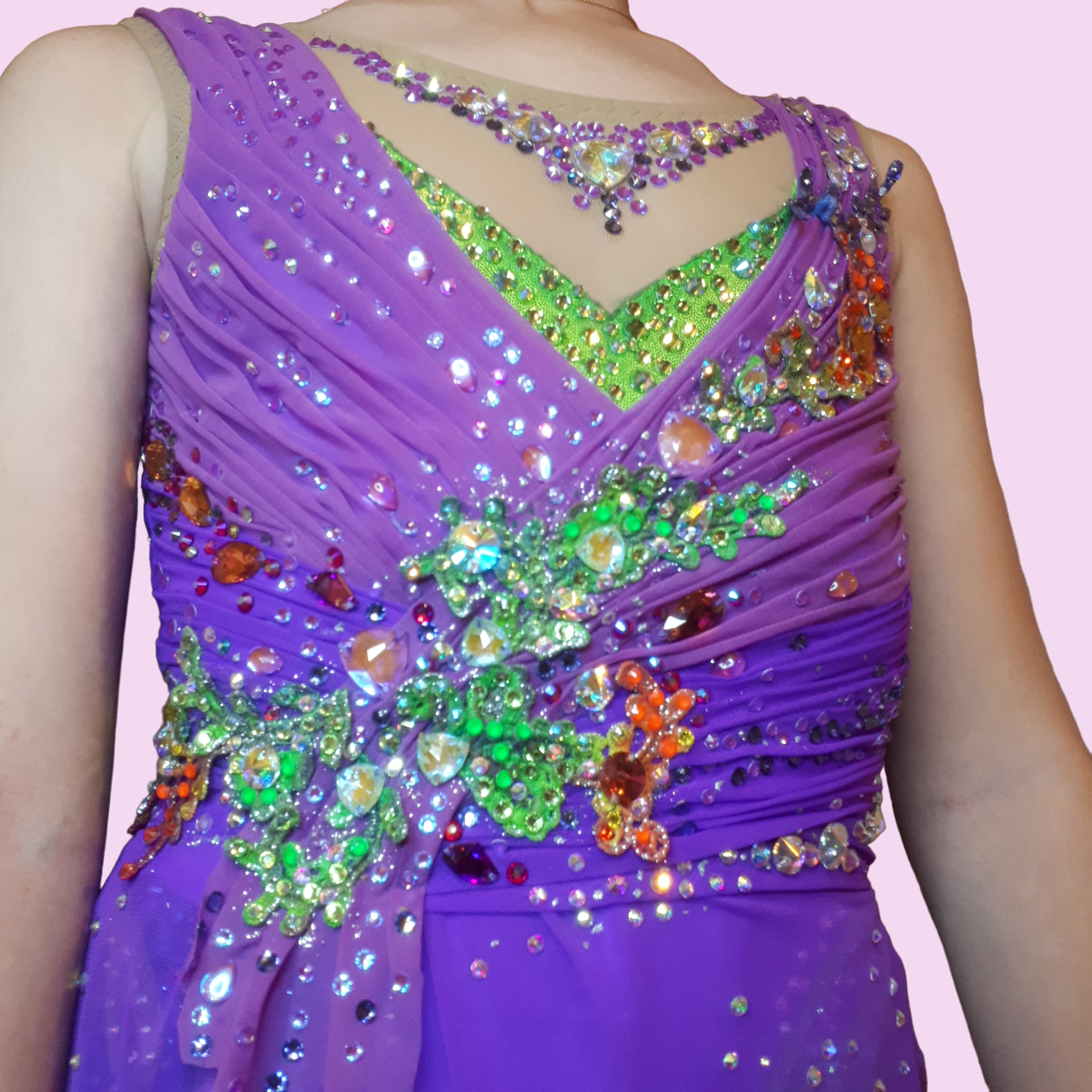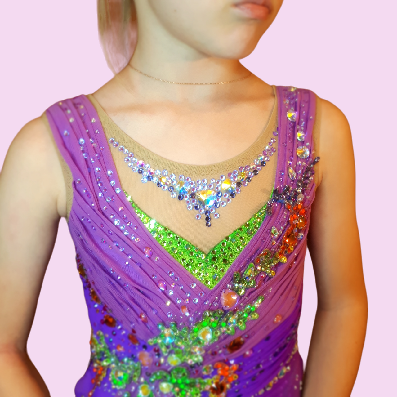 Главная идея в моей работе это грани, ступени успеха, по которым взбирается ежедневно каждая гимнастка для достижения  своей цели. И стразы .evoli обеспечивают чистоту, сияние, прозрачность, подчеркивающие красоту купальника