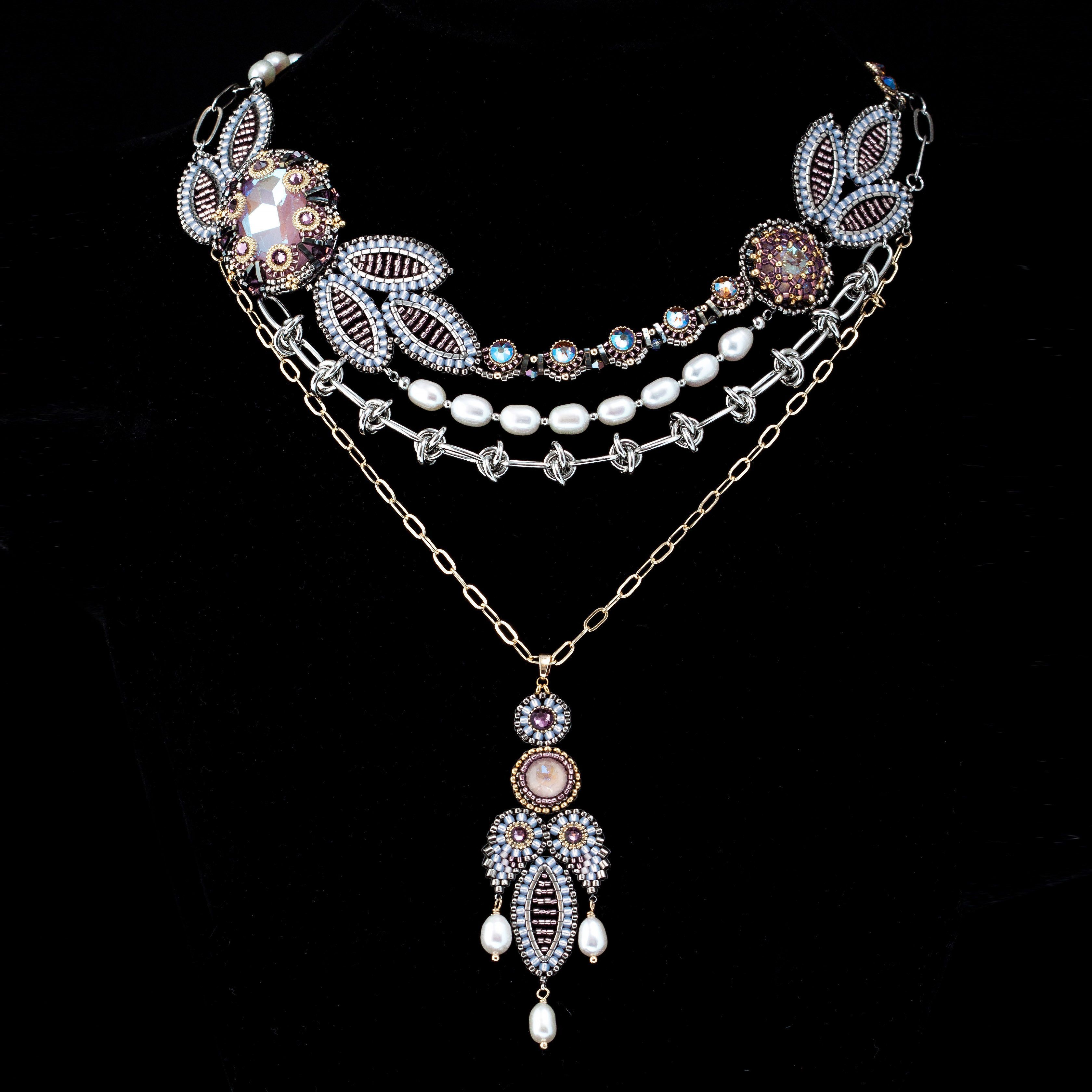 Сегодня она освещает мою дорогу к рубежам Вселенной Эволи. В дар преподношу ей это колье с ослепительными кристаллами в обрамлении лавровых ветвей. Сияющее и женственное украшение с продуманным до мелочей дизайном, под стать музе способной вдохновлять мастера декоративно-прикладного искусства.