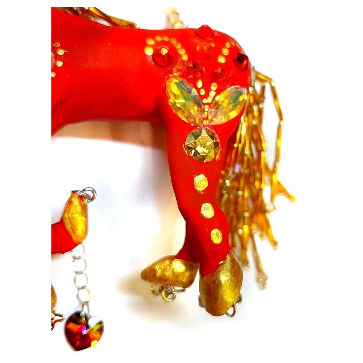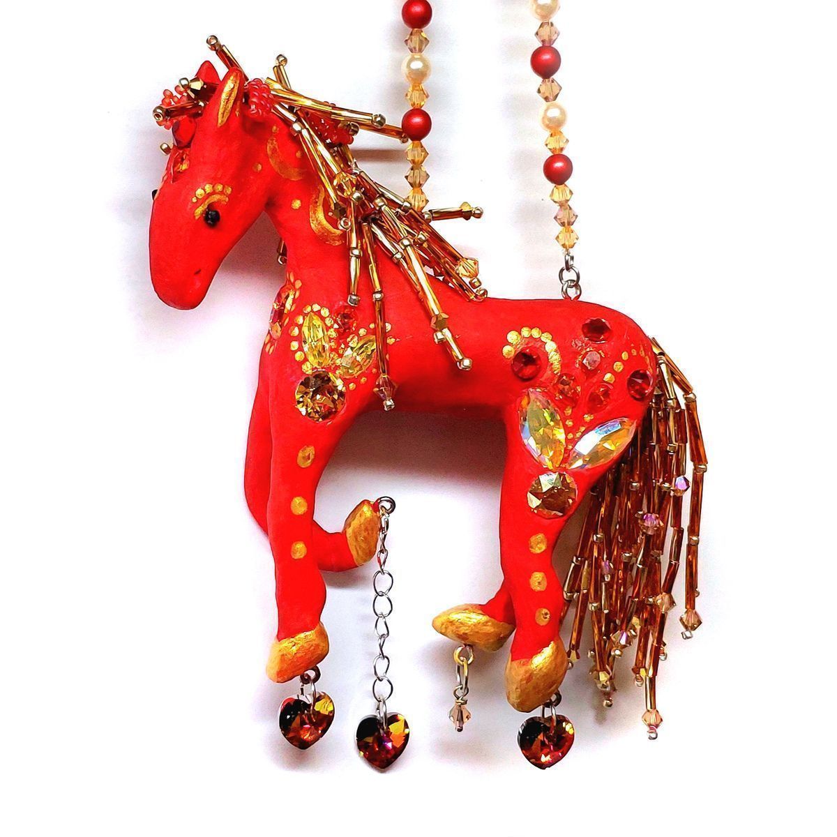 Кристаллы являются здесь частью игрушки, грива и хвост выполнены из бисера и
