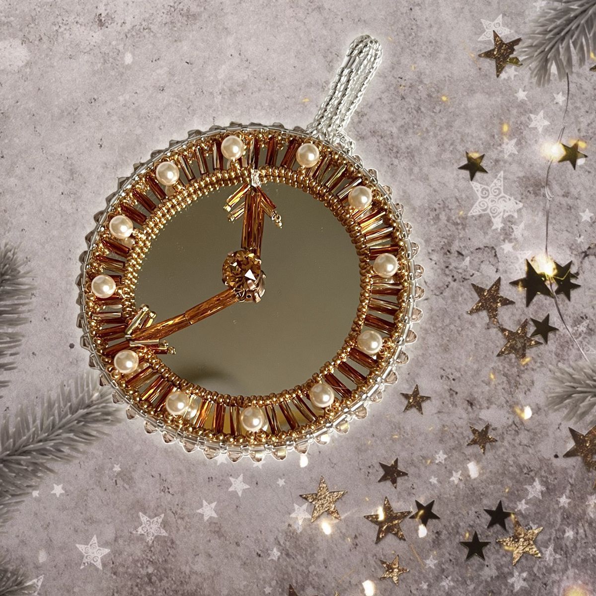 Елочная игрушка "Зеркальные часы или Скоро Новый год"