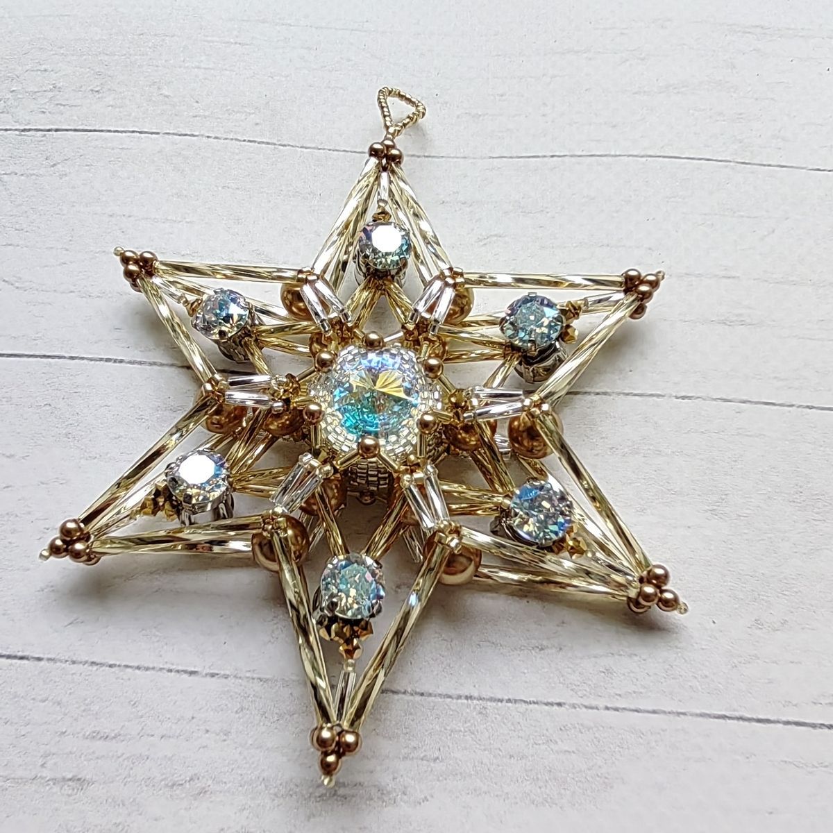 Объемная двухсторонняя елочная игрушка "Звезда-снежинка"