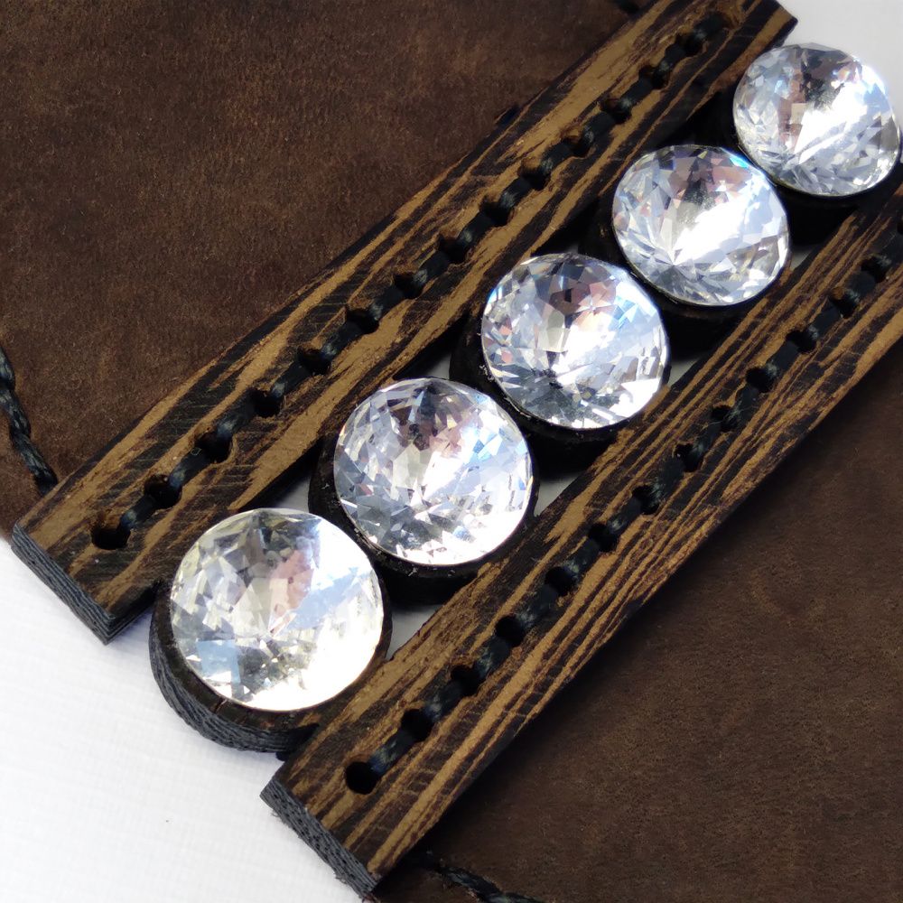 Эти звёзды - в моём браслете. Сияющие кристаллы в непривычном для себя окружении дерева и кожи.