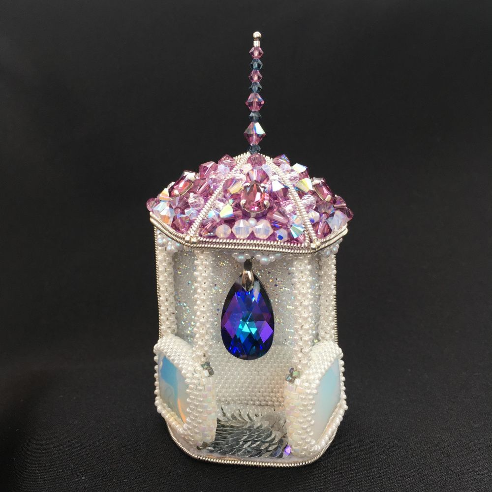 Идея для конкурса возникла, когда я прогуливалась по берегу озера и взгляд мой замер на Ротонде. И меня осенило! Вот она! Вот та брошь, которую необходимо соорудить для конкурса sw-strazy «Новые грани сияния»!