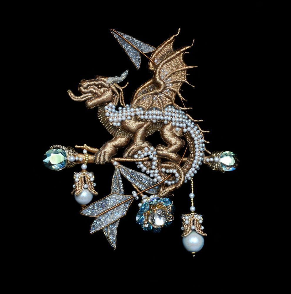 В рамках темы конкурса «Новые грани сияния» слово «сияние» я рассматривала, как творческое начало в человеке, тягу к прекрасному, талант, который каждый человек может в себе развить и приумножить. Созданная мною брошь наполнена символами. Дракон в различных культурах и учениях толкуется по-разному, в данном случае для меня он- символ мудрости, силы и хранитель доступа к тайным знаниям.