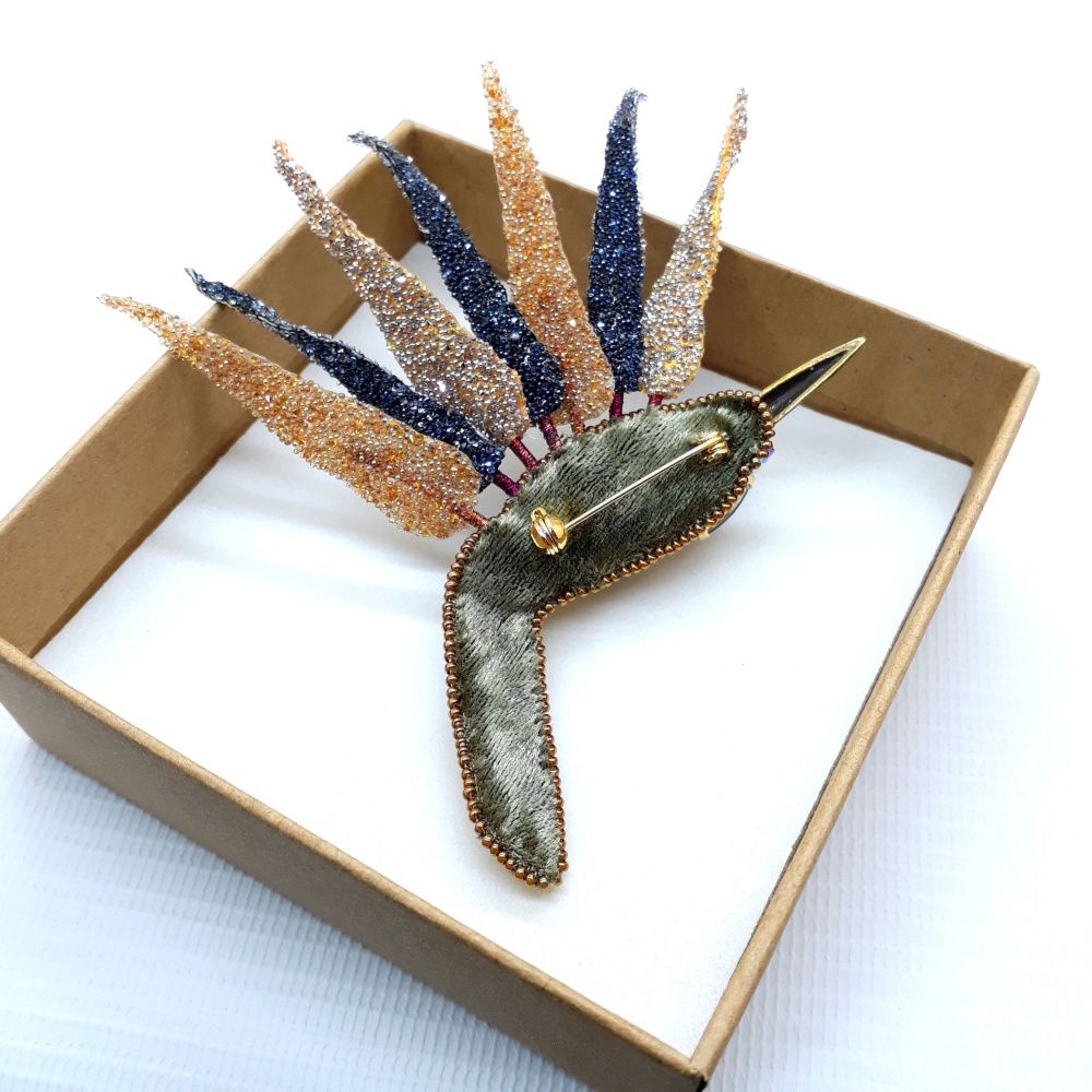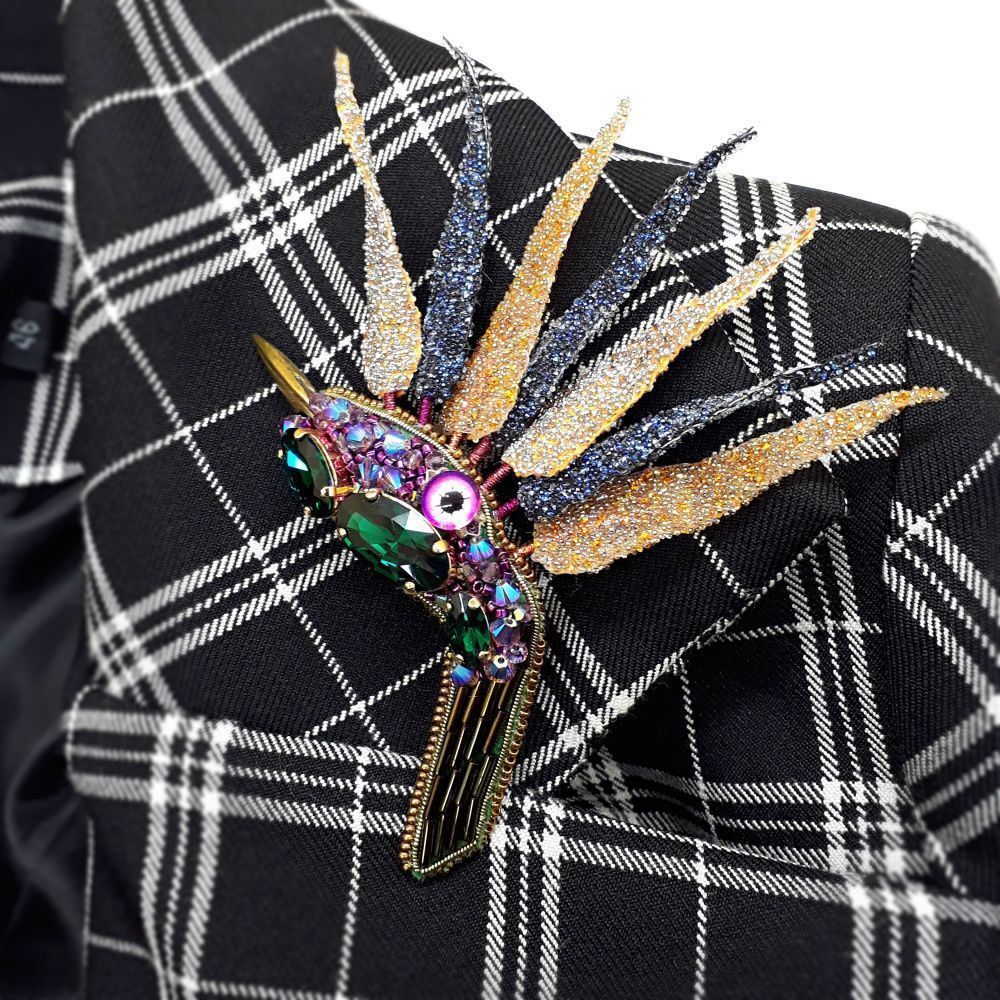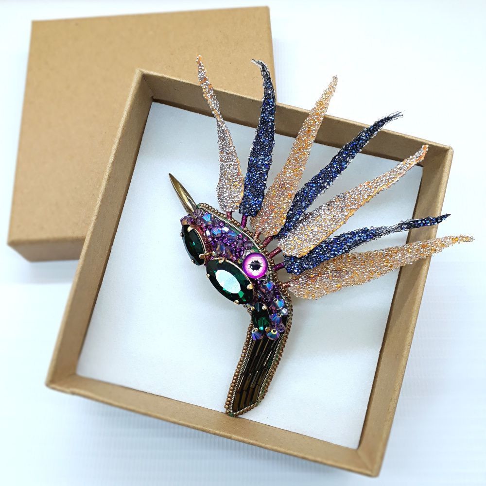 Работа вдохновлена удивительным растением — стрелицией, также известной в народе, как Райская птица. В творчестве, как и в природе, никогда заранее не знаешь, какой новой гранью откроется знакомый образ. Как птица, может вдруг обернуться хрупким цветком, так и прекрасный цветок может оказаться пташкой и сразу упорхнуть.