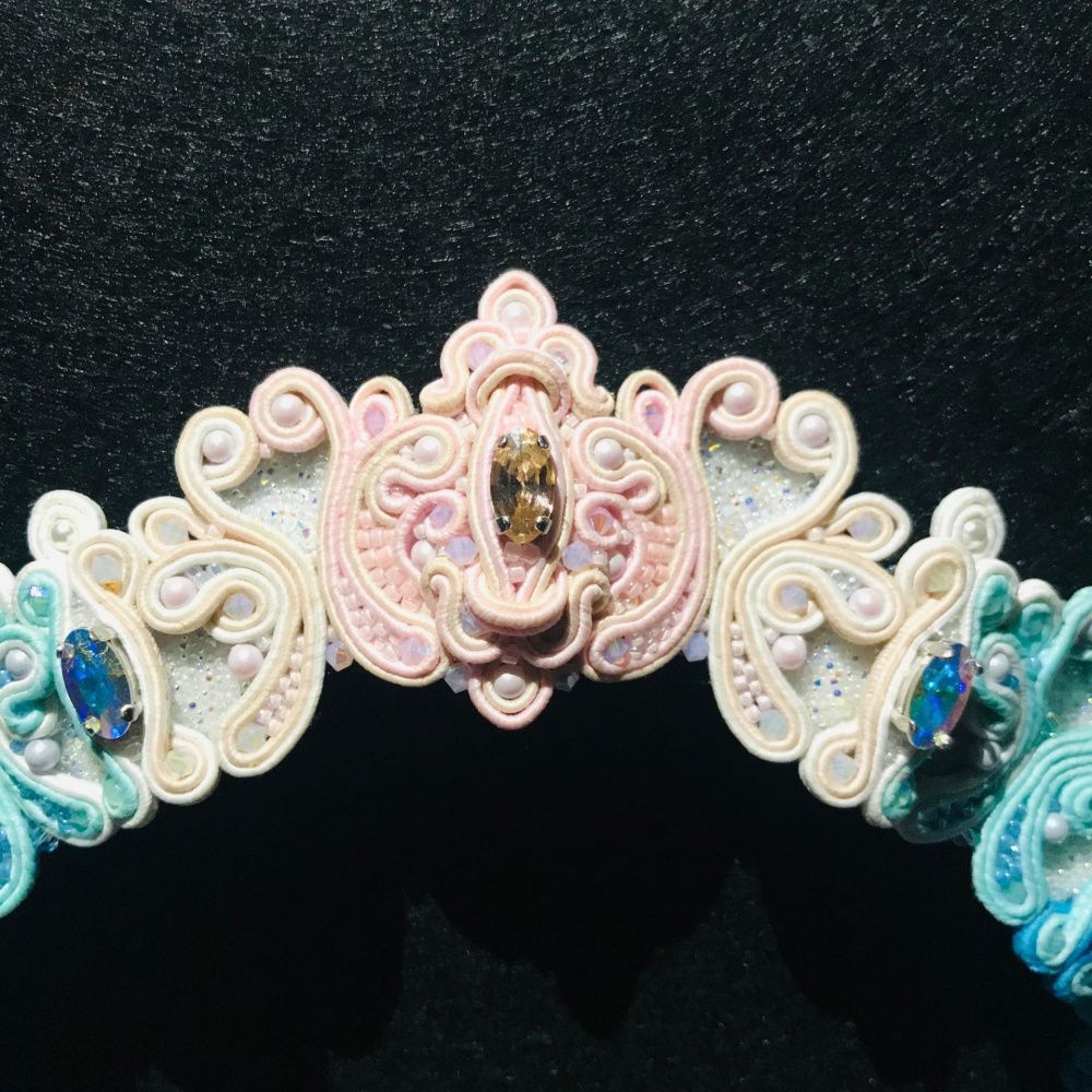 Моя работа представляет собой сутажную мини диадему с двумя сторонами.