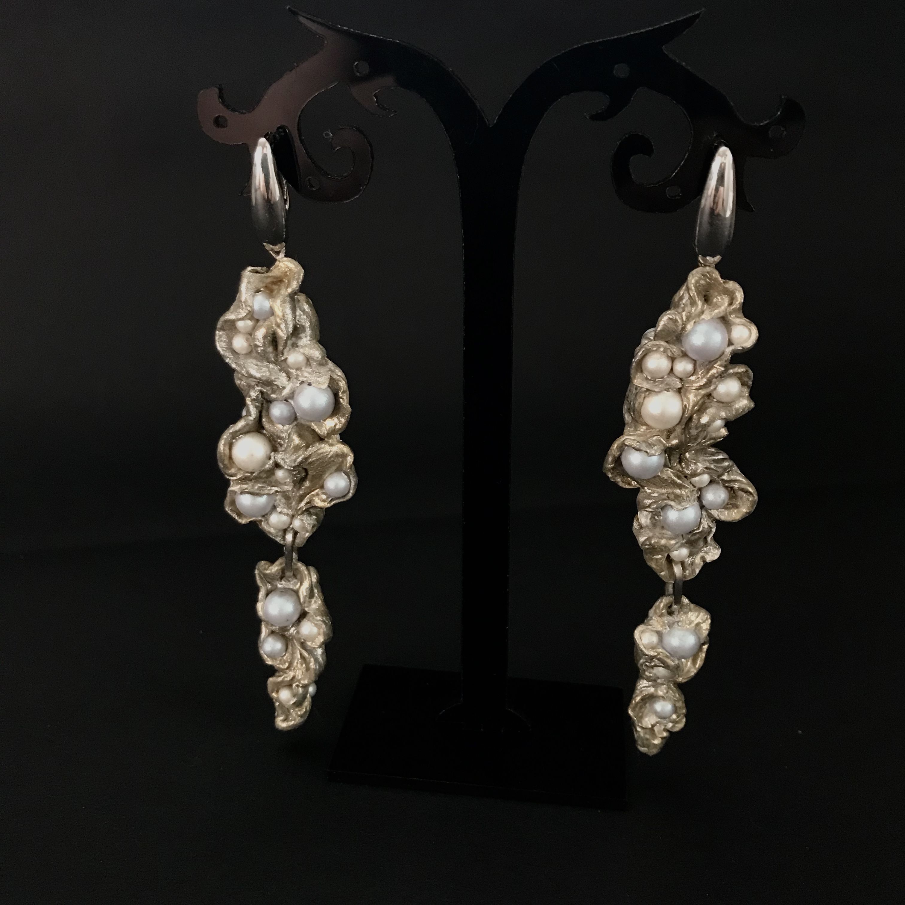 Эти строки из гимна Гомера к Афродите вдохновили меня создать серьги в виде морской пены с искрящимися капельками в виде жемчужин.