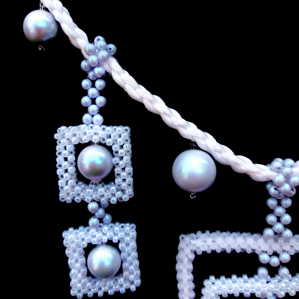 Колье Эскимо — это розовый и голубой жемчуг из новой коллекции Swarovski в прямоугольных рамках из бисера. Лаконичное украшение в котором можно "и в пир, и в мир".