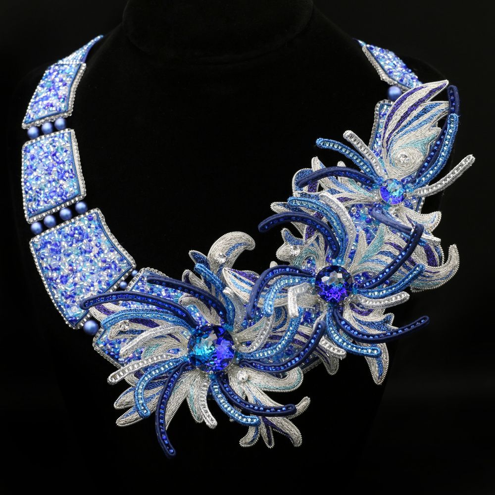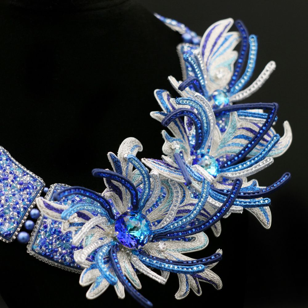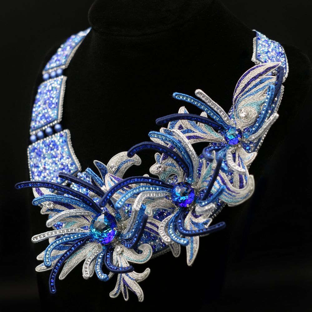 Посмотрите как сияют ШИКАРНЕЙШИЕ кристаллы 1400 Dome Round Stone Crystal Bermuda Blue, а вышитые необычной формы элементы вокруг кристаллов добавляют им новые грани.