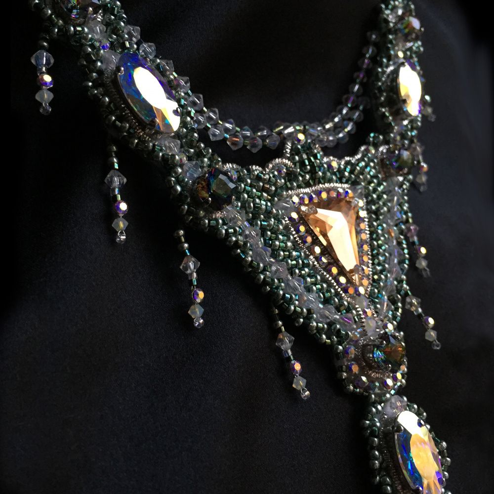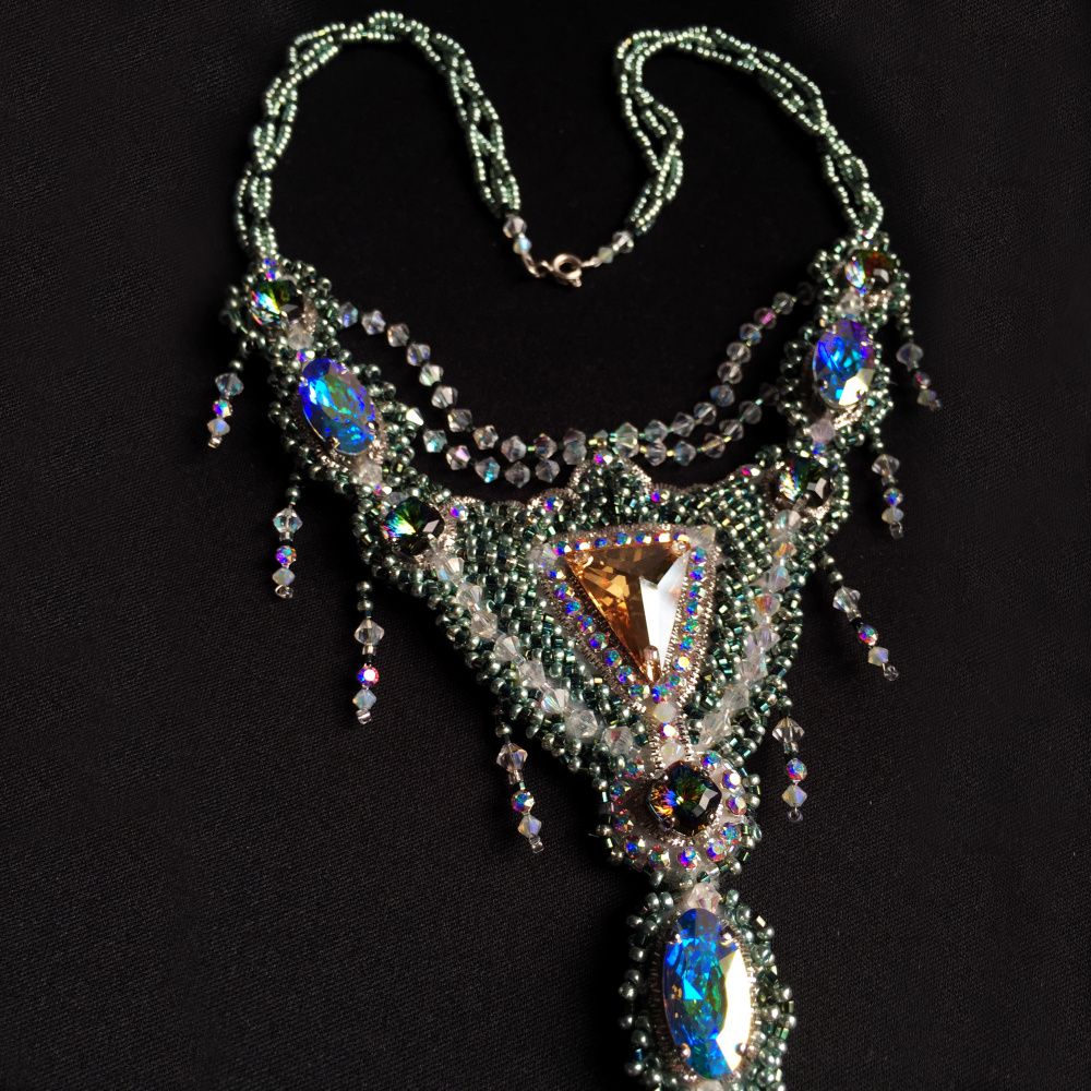 Компания Swarovski подарила миру прекрасные звёзды, из которых рождаются созвездия, галактики, вселенные. Грани кристаллов преломляют свет, отражая мир бытия с разных сторон: иногда созидательной, а иногда и разрушительной. Колье "Триангулум - грани реальности" - это сияющая в звёздах Swarovski вселенная северных, суровых, но спокойных мест. Великая сила застыла в камне в ожидании достойного. Она здесь, она ждёт.