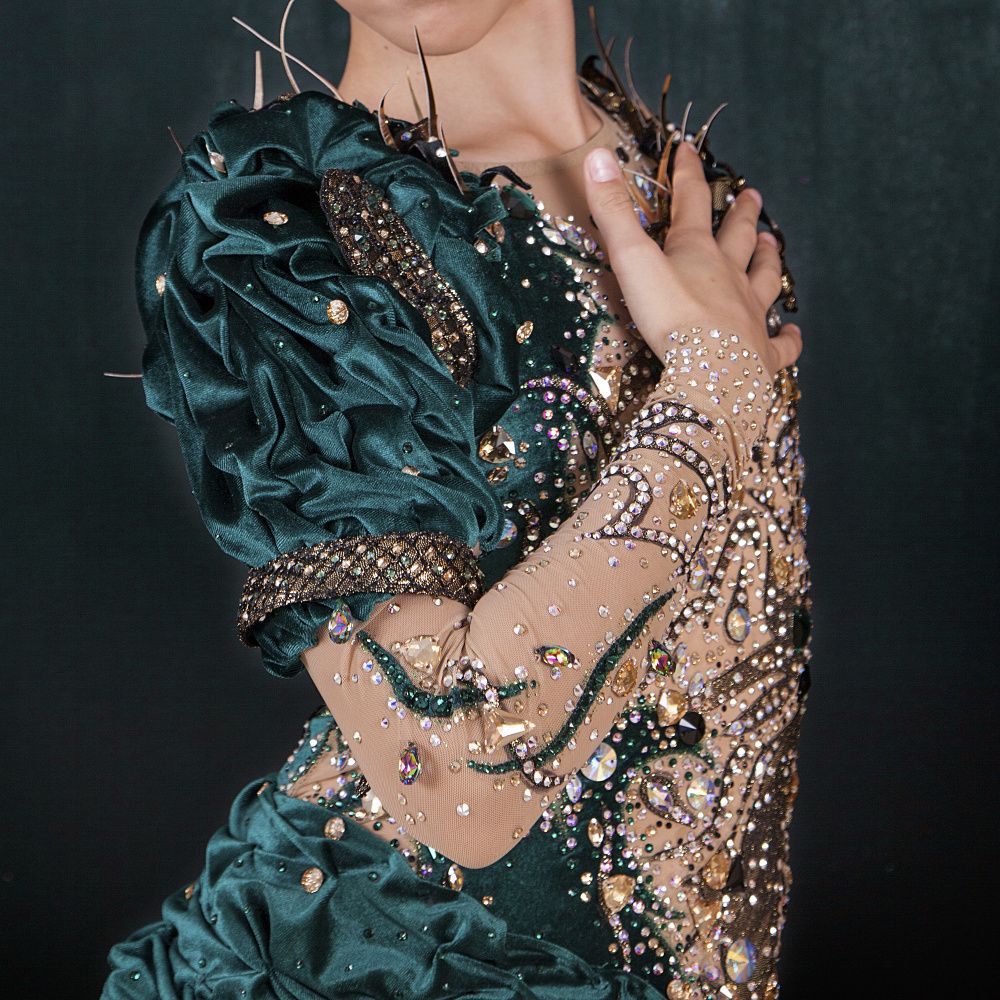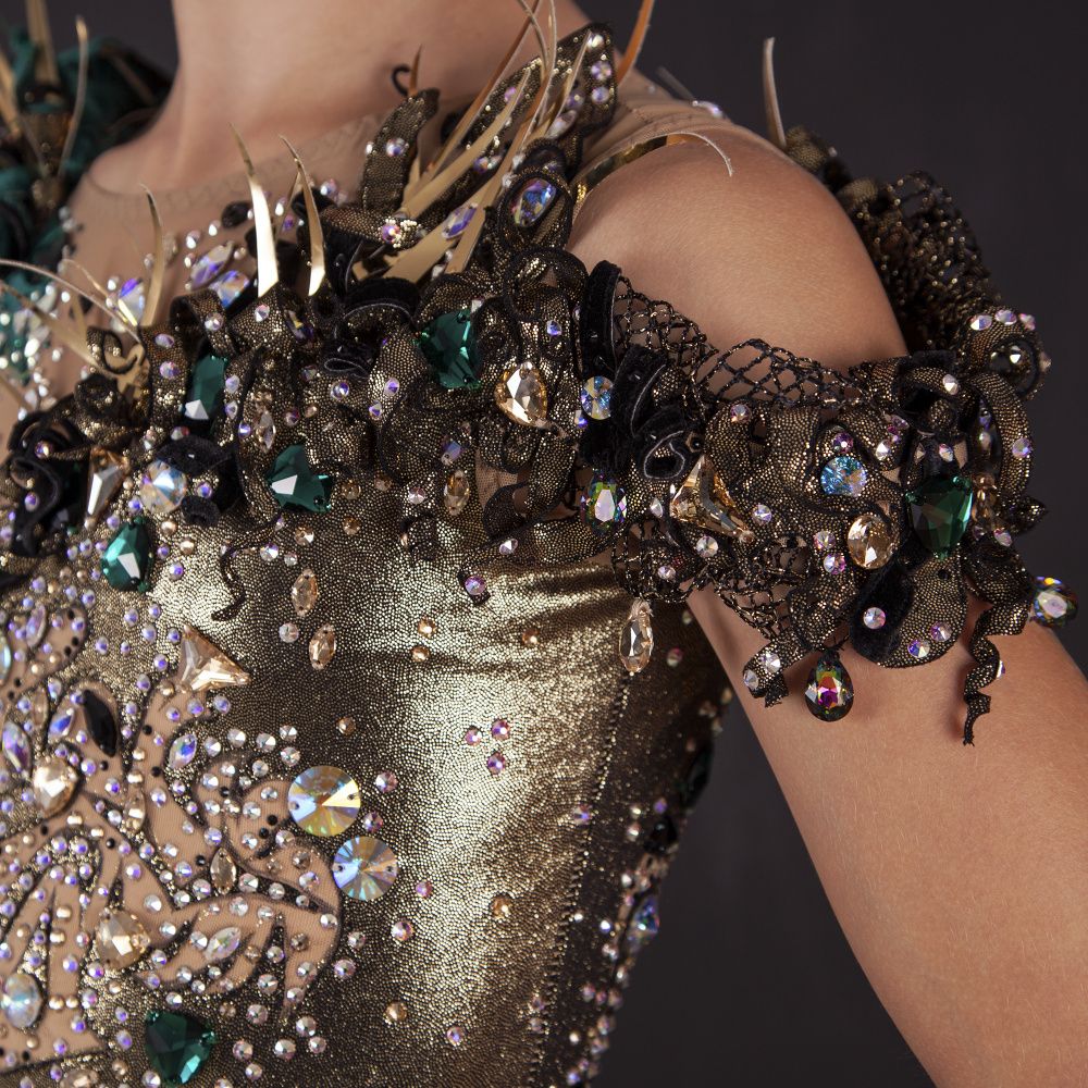 Бархат лагуны создает атмосферу очаровывающей таинственности и манит загадочностью. После ночи выходит солнце - значит надежда на новую магию. При первых лучах лагуна преображается в золотые, будто нескончаемые воды. Разноцветные кристаллы плавают в изумрудной лагуне, украшая зеленые воды золотыми окрасами, которые, передают весь рельеф и спектр эмоций композиции купальника. Днем в отражении этих удивительных вод видится искристое солнце и изящные облака, бегущие по небу.