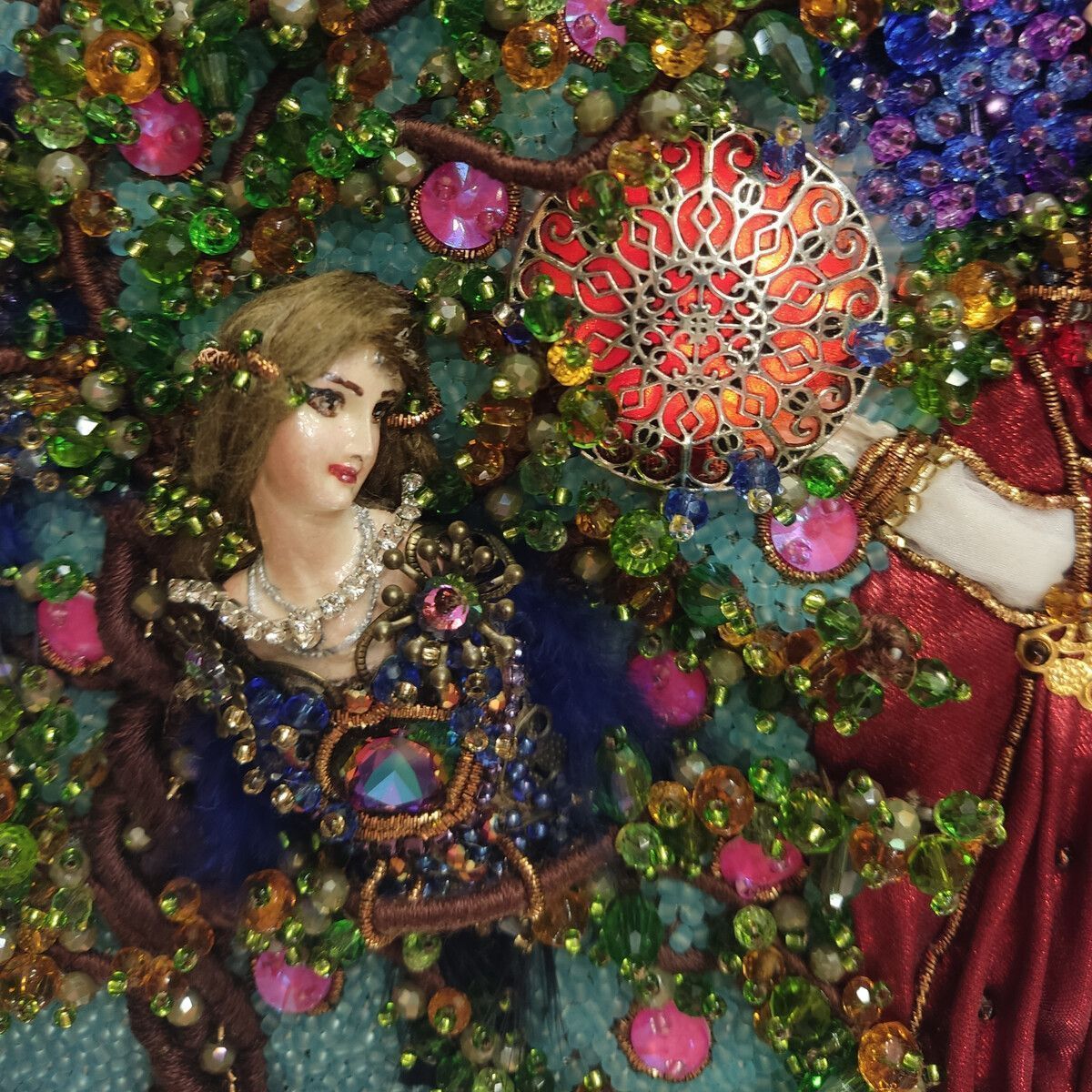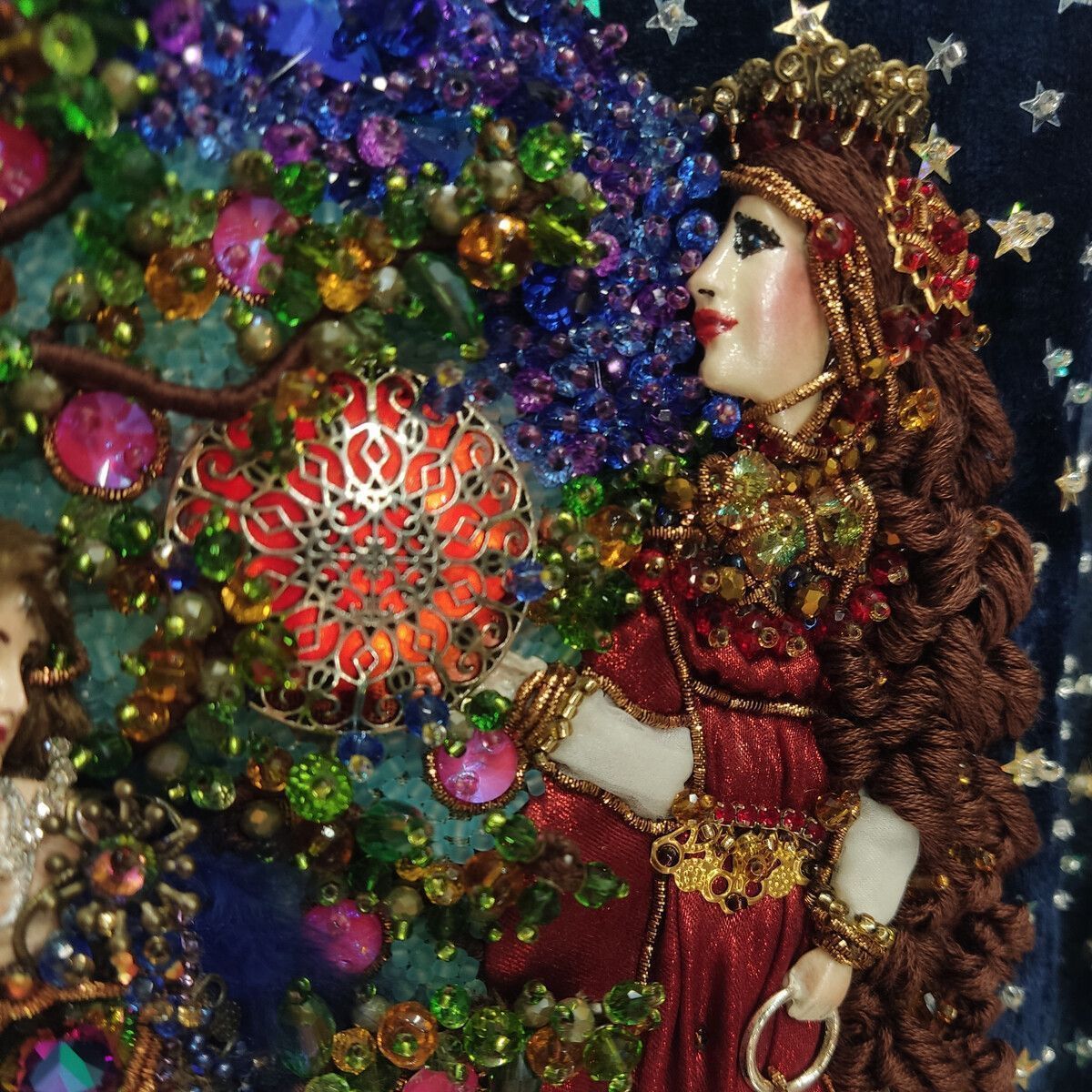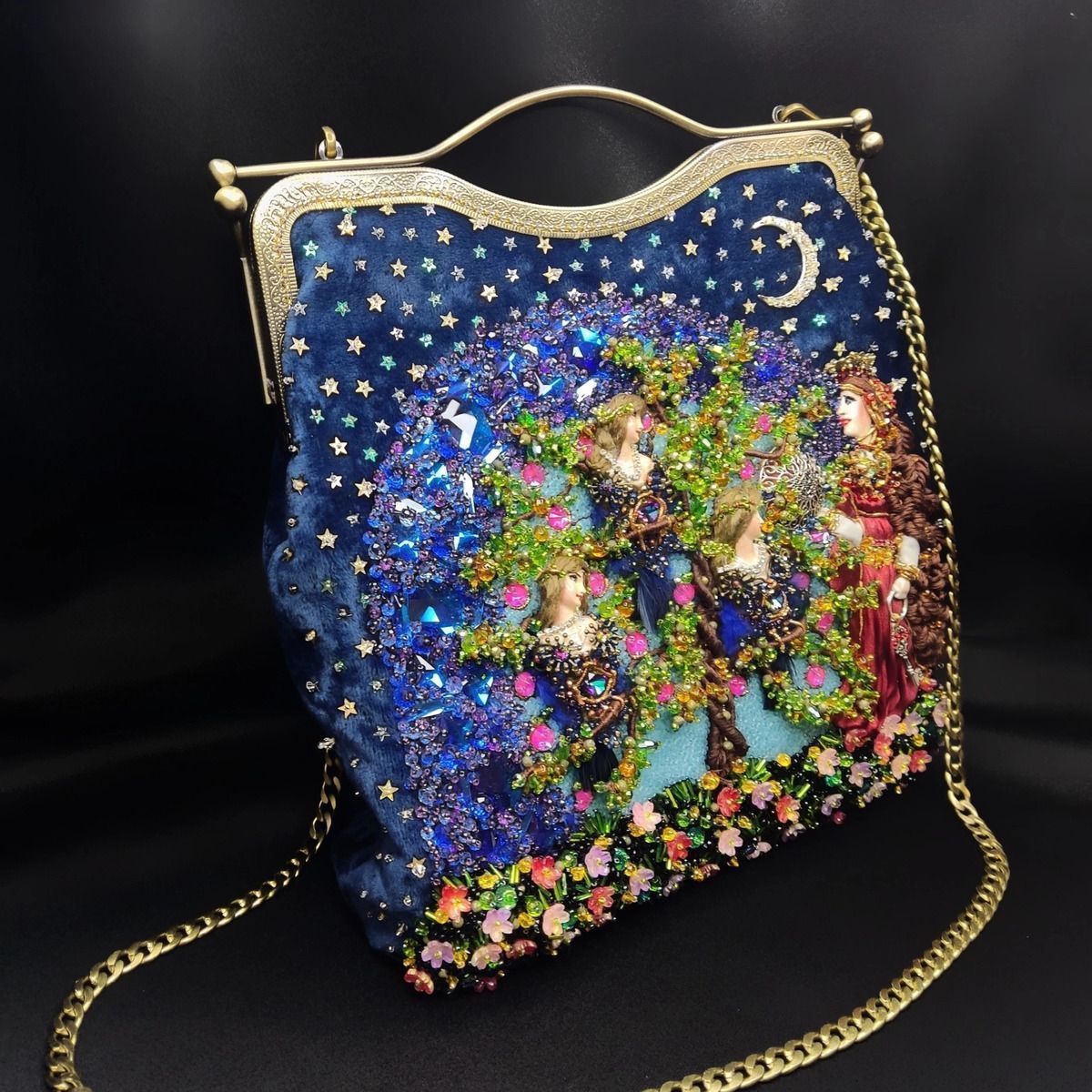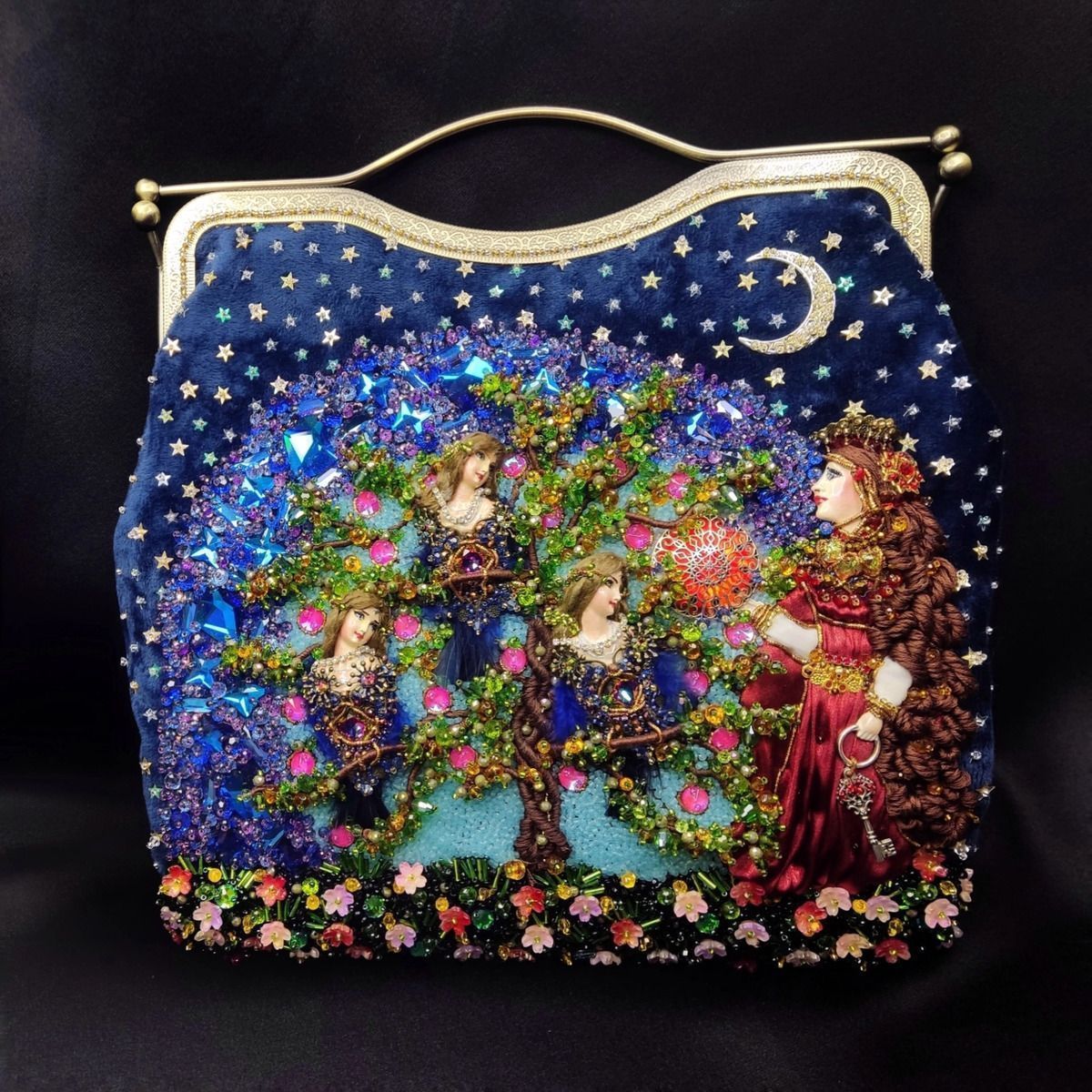 Хотелось изобразить объёмную вышитую "иллюстрацию". Сумочка имеет блок питания и подсветку портала и лампы для ещё большей сказочности, праздничное настроение гарантировано. Увесистая 900 грамм.