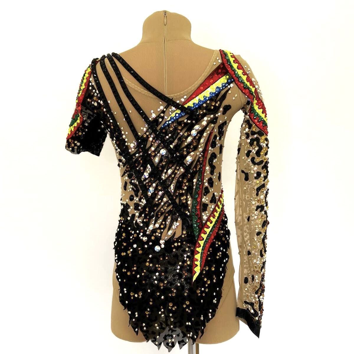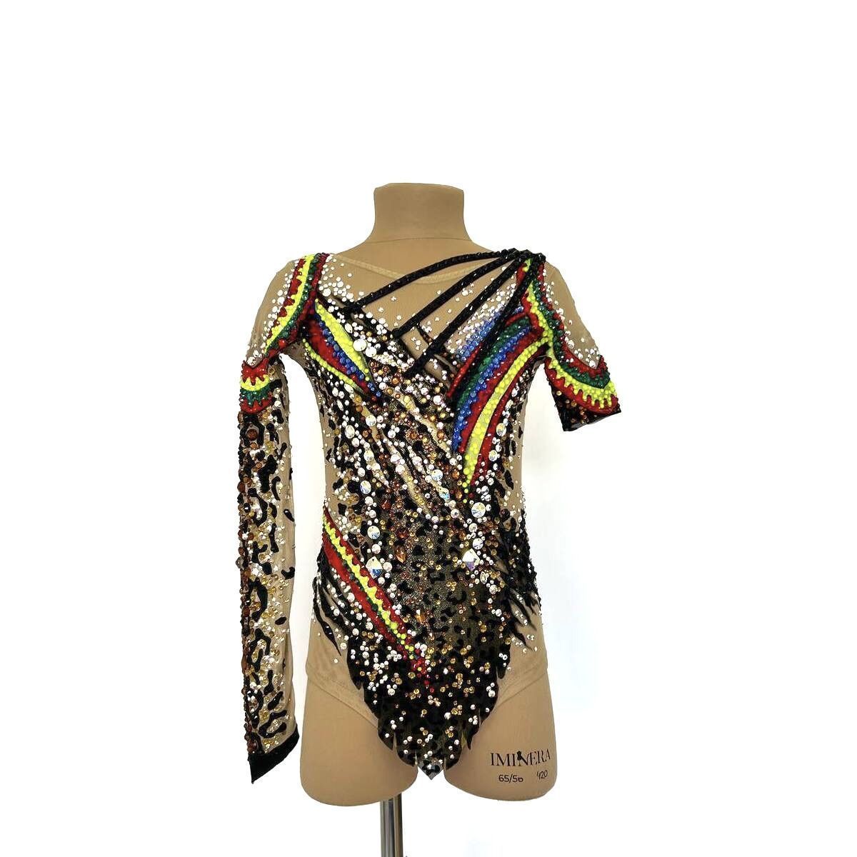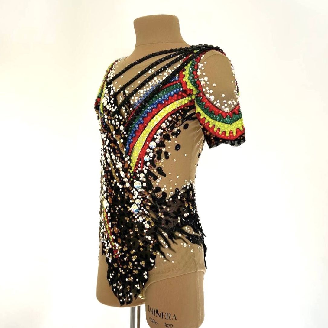 При создании купальника «Предводительница диких амазонок» вдохновились традициями индейцев и силой духа Амазонок. Воинственный и смелый, яркий и дикий. В нем гимнастка выходит на ковер как на бой, чтобы показать себя сильной. Она, как вождь племени, способна вести за собой и вдохновлять на победы. Леопардовый принт напоминает о том, что она быстра и изящна, как свирепая кошка. Яркие акценты в традиционном индейском стиле приковывают внимание к той, кто ничего не боится.