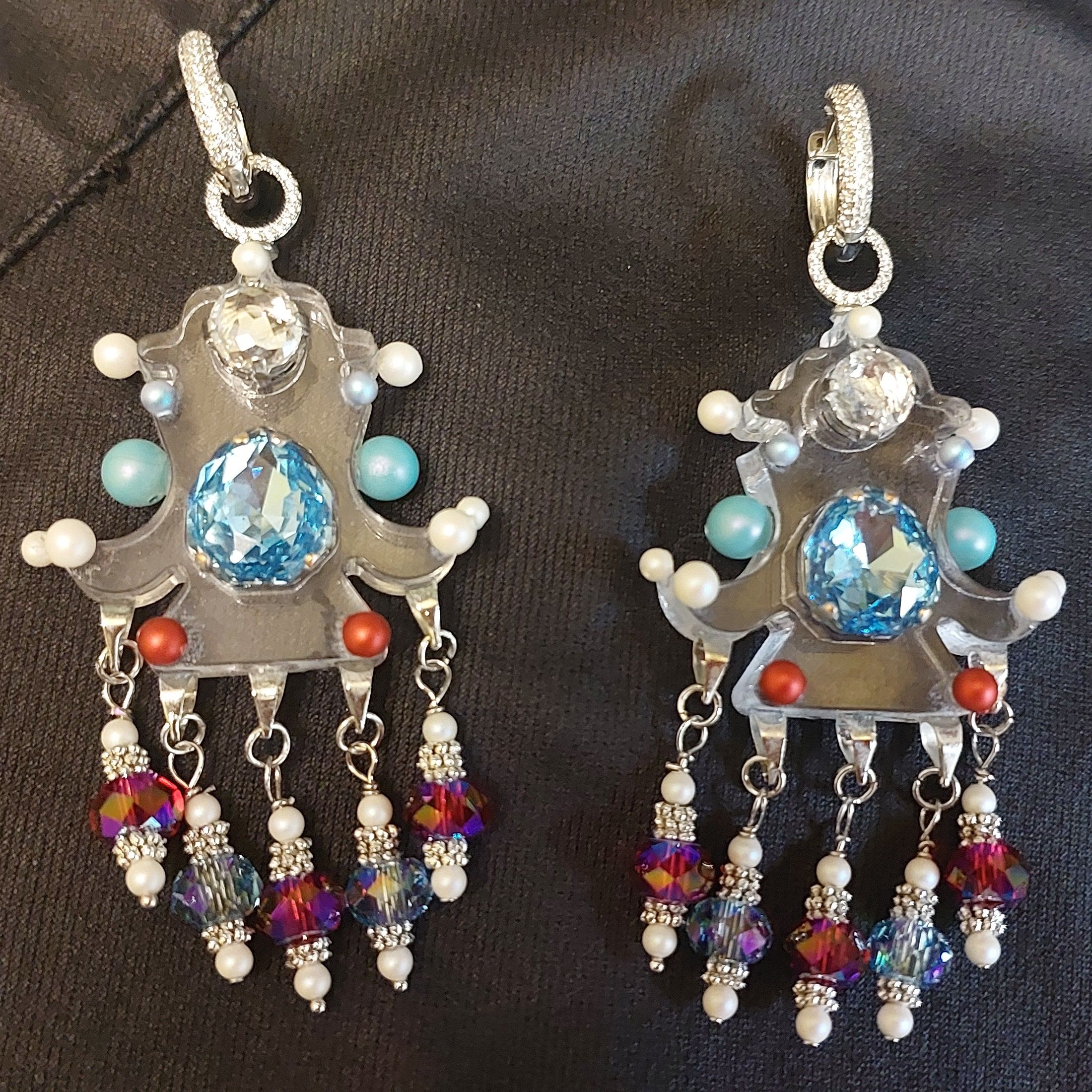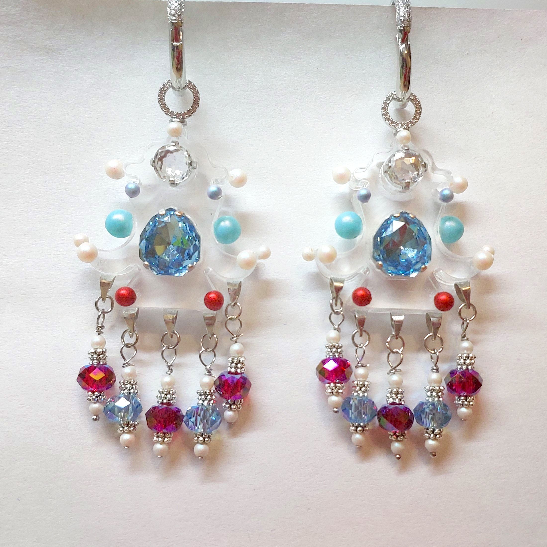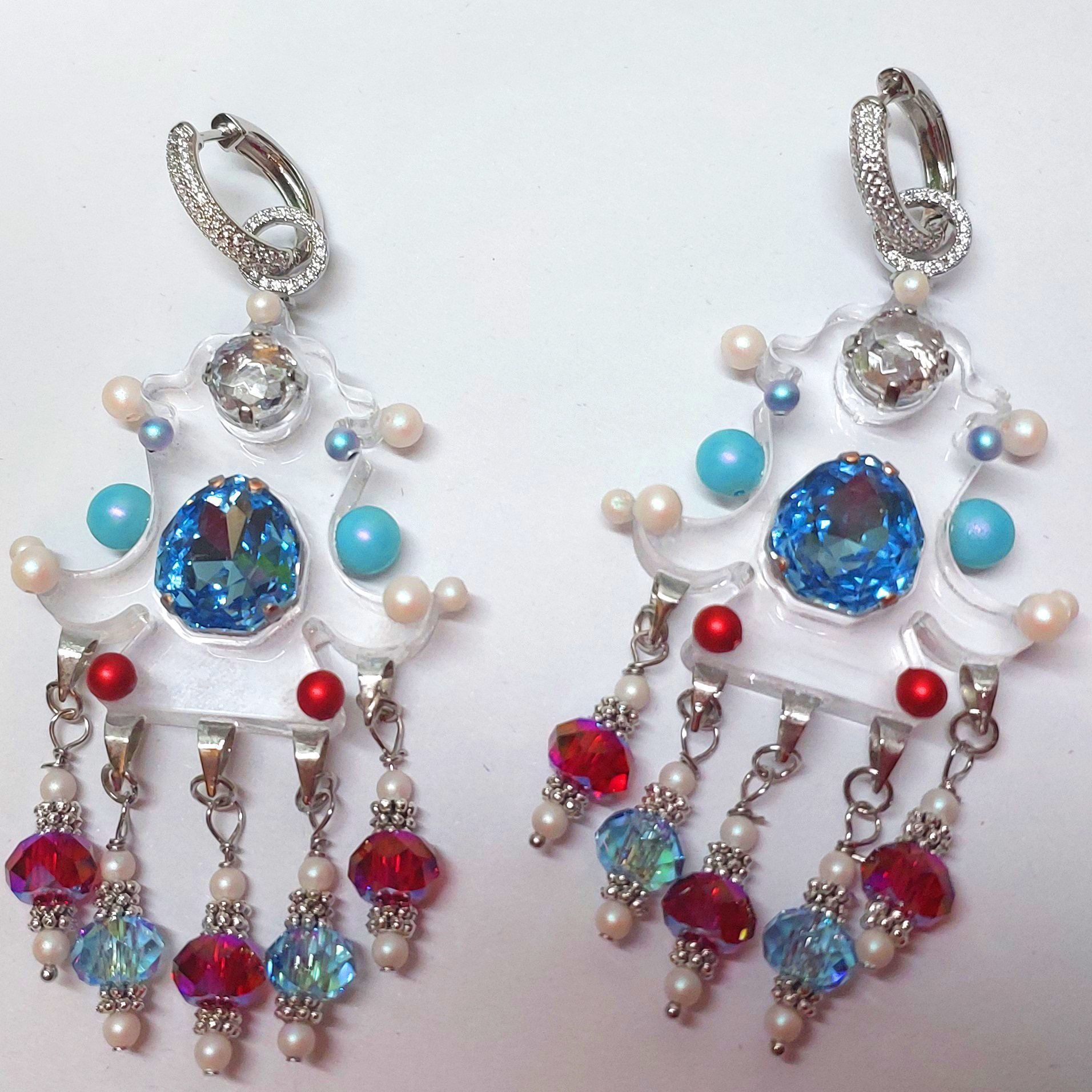 таких серег покрыты сканным орнаментом, цветной эмалью, вставками цветного