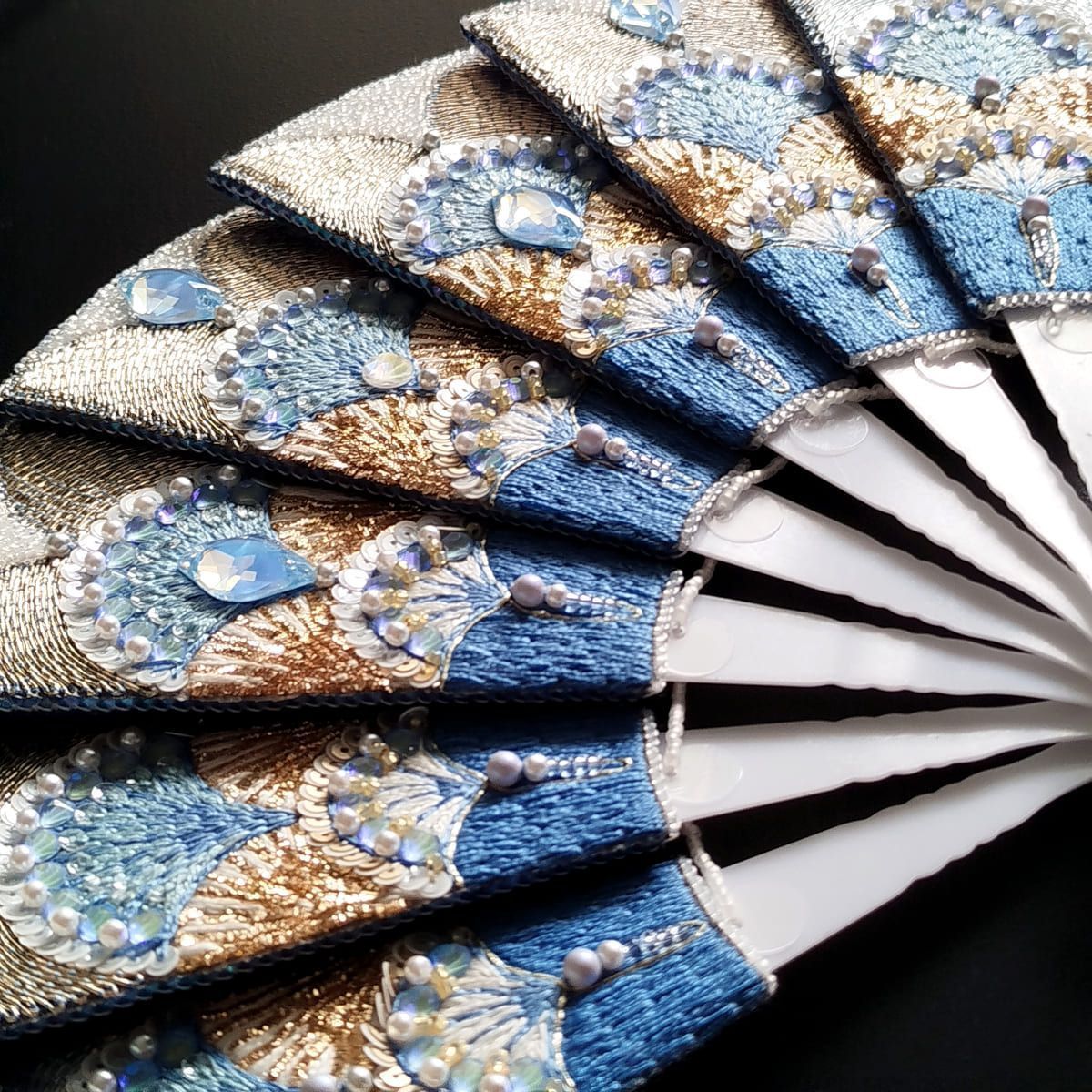 А потом я подумала- почему бы красавице на балу не захотеть поиграть немного и не сделать знак понравившемуся кавалеру, на пару секунд показав ему яркую сторону своего веера?!