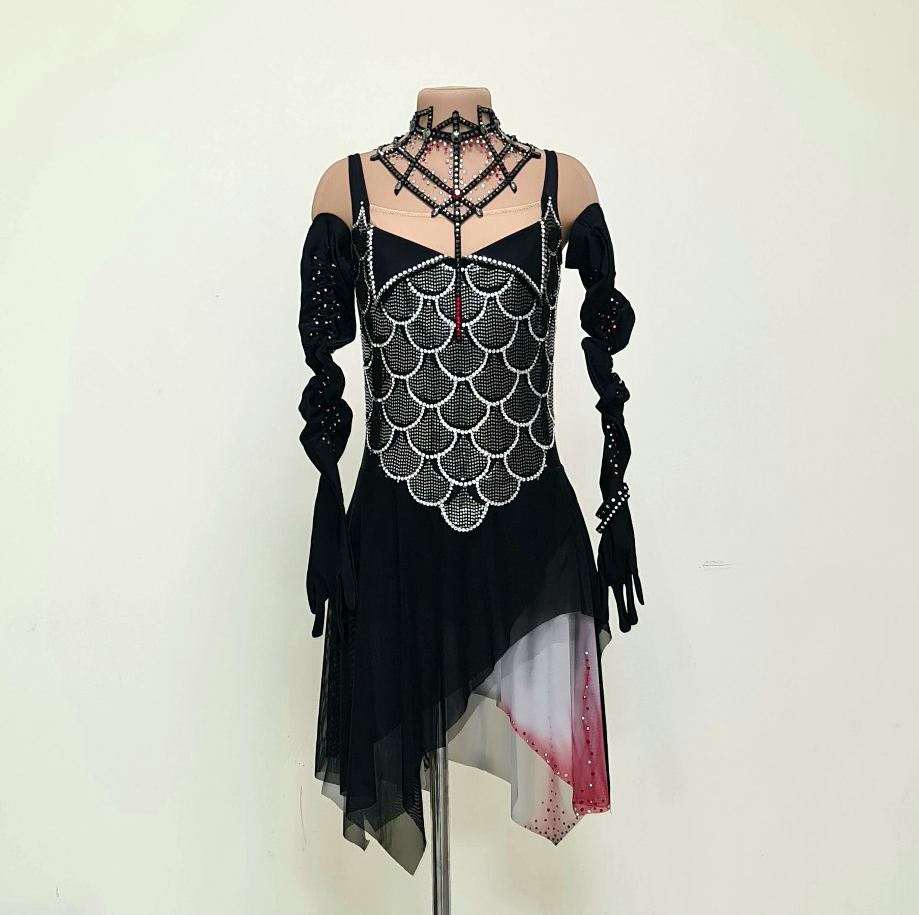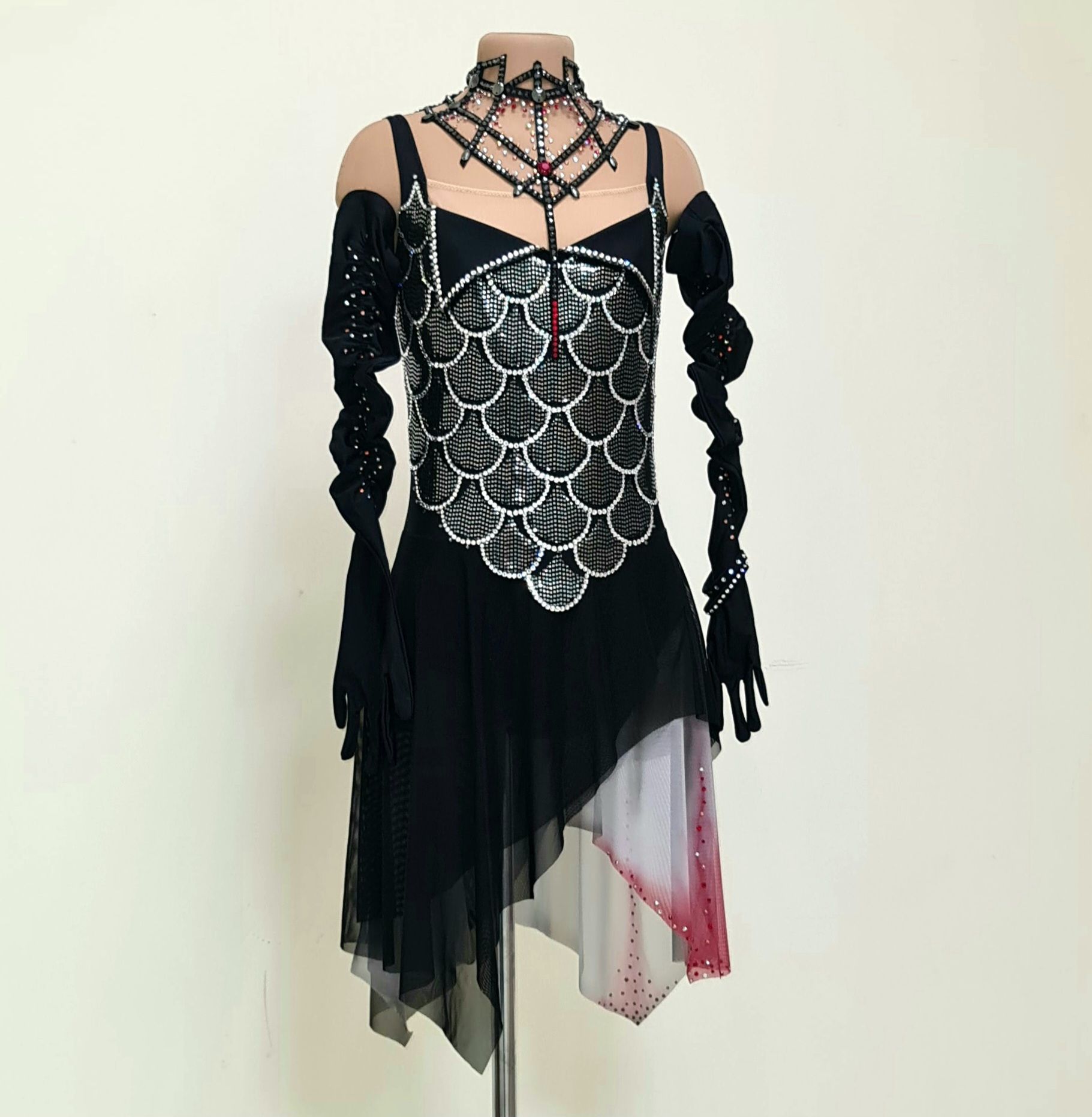 Тайна есть у каждого и в каждой истории. В данной работе раскрыта тема вампиров. После просмотра мюзикла "Бал вампиров" Венская версия 2009 года, захотелось отразить это в костюме для фигурного катания. Моя героиня с бледной кожей выбирает чёрный наряд с элементами декора ( перчатки, чёкер). Красные акценты делают её образ интересней, загадочней. Я представила как юная вампирша, отрываясь от пола кружит,  в так вальсу, со своим избранником. Блеск страз на платье и прикосновение к ним не сравнить ни с чем. Эта ночь будет незабываемой!