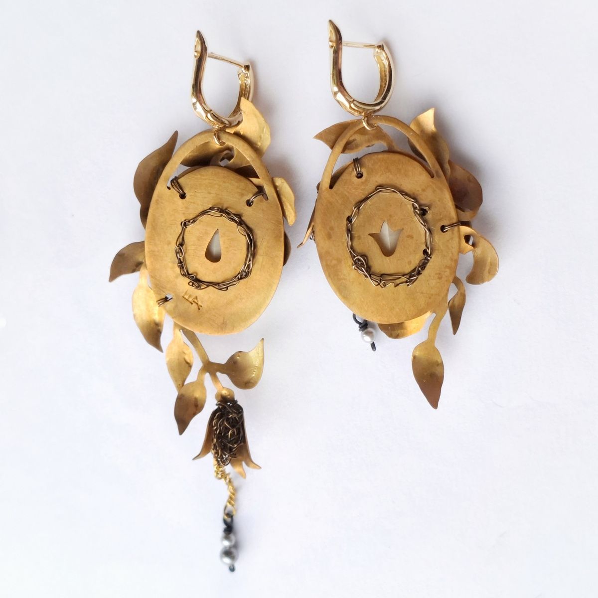 Асимметричные, притягивающие взгляд. Декоративные композиции на правой и левой серьге не повторяются, но дополняют друг друга. Совершенная классика природы, никогда не выходящая из моды.